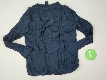 Bluzka damska w paski, rozmiar 38. - Fason: z długim rękawem, okrągły dekolt - Wzór: drobne, pionowe paski granatowo‑białe (efekt wysmuklający sylwetkę) - Materiał: lekka, przewiewna tkanina (miękk...
