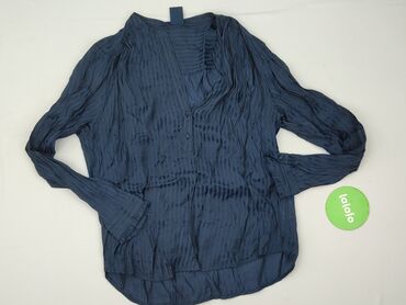 Długi rękawElegancka damska koszula w odcieniu granatu. Charakteryzuje się unikalną fakturą z poziomymi prążkami, które nadają jej wyrafinowany wygląd. Koszula posiada długie rękawy i dekolt w kształcie litery V, z kilkoma guzikami na wysokości klatki piersiowej, co pozwala na regulację głębokości dekoltu. Delikatnie pofałdowany materiał dodaje jej lekkości i swobodnego charakteru. Idealna do stylizacji codziennych, jak i bardziej formalnych, oferując komfort i styl.