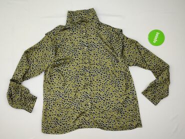 Bluzka damska z długim rękawem, lekko prześwitująca, w miętowym odcieniu z cętkowanym (animal) wzorem i pionową fakturą/„plisowaniem”. - Fason: luźny, prosty, z wysoką stójką. - Zapięcie: rząd ...Stan: