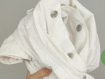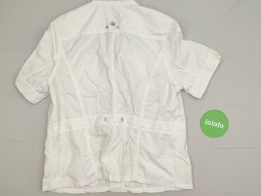 Krótki rękawKoszula damska w kolorze białym, z krótkim rękawem i kołnierzykiem. Model jest zapinany na guziki i posiada cztery kieszenie: dwie na wysokości klatki piersiowej zapinane na guziki oraz dwie skośne kieszenie na zamek błyskawiczny. Rękawy można podpiąć za pomocą paska z guzikiem. W pasie znajduje się regulowany ściągacz, który pozwala na dopasowanie fasonu do sylwetki. Na ramionach i plecach widoczne są ozdobne przeszycia. Jest to praktyczny element garderoby, idealny do codziennych stylizacji.