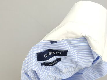 Długi rękawKoszula damska marki GILBERTO w paski, w odcieniach błękitu i bieli, z białym kołnierzykiem. Model z długimi rękawami zakończonymi mankietami zapinanymi na guziki. Idealna do biura lub na eleganckie wyjścia.
