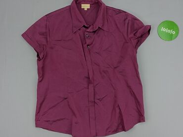 Bluzka damska Konfex z krótkim rękawem - Kolor: chabrowy/fioletowy - Materiał: 100% bawełna (metka) - Krój: lekko taliowany, zapinana na guziki z przodu - Dekolt: w kształcie litery V ze stójką - ...