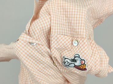 - Kieszonka na piersi zapinana na guzik, z naszywką z myszką leżącą na kawałku pizzy