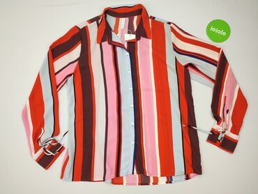 Koszula damska AMISU, rozmiar S. - Wzór: pionowe pasy w intensywnych kolorach – czerwienie, róż, jasny błękit, bordo, biel oraz granat; przy listwie guzikowej dodatkowy wąski pasek granatu. - Faso...Stan: