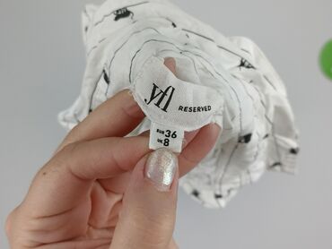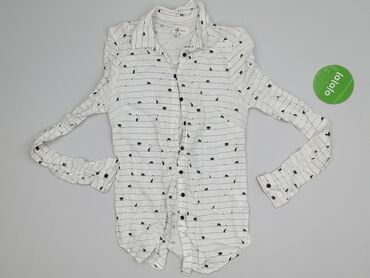 Koszula damska Reserved (linia YFL) - Model: koszula z kołnierzykiem, zapinana na rząd czarnych guzików - Wzór: białe tło w delikatne poziome paseczki z czarnymi sylwetkami kotów - Rękawy: długie,...