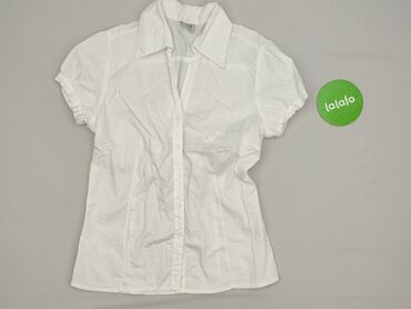 Biała koszula damska S&G Collection, rozmiar L. - Fason: dopasowany, z krótkim rękawem - Kołnierzyk klasyczny, zapięcie na guziki na całej długości - Materiał: 95% bawełna, 5% poliester (metka pro...