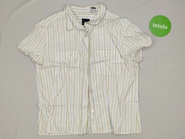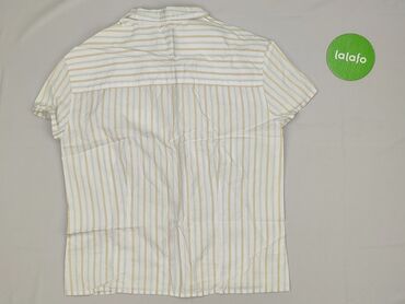 Koszula damska z krótkim rękawem - Krój: klasyczny, taliowany, z kołnierzykiem i zapięciem na guziki z przodu - Wzór: pionowe pasy w odcieniach bieli i jasnego błękitu (różna szerokość pasów, deli...Stan: