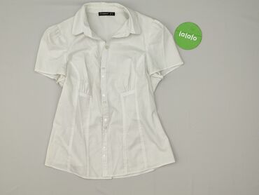 Biała damska koszula Atmosphere z krótkim rękawem - Krój: taliowany, z pionowymi cięciami modelującymi sylwetkę - Kołnierzyk: klasyczny, usztywniany - Zapięcie: pełna listwa guzikowa z przodu - Rę...Stan: