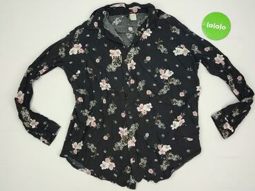 Bluzka/koszula damska H&M Divided - Model: koszula zapinana na guziki - Wzór: czarny materiał w kwiaty (białe i pudrowo‑różowe motywy, zielone listki) - Fason: długi rękaw, kołnierzyk, lekko zaokr...Stan: