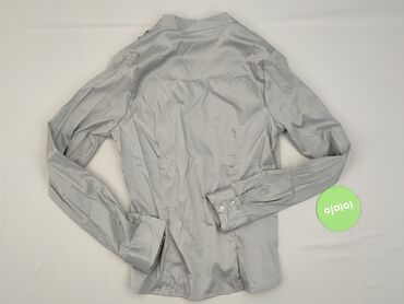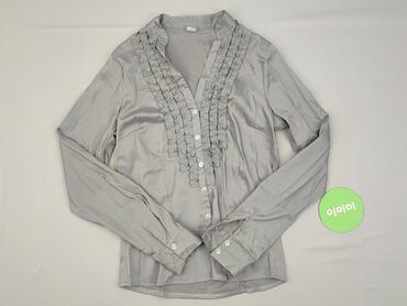 Szara koszula damska z długim rękawem, rozmiar M. - Fason koszulowy, zapinana z przodu na rząd białych guzików - Długi rękaw z mankietem; możliwość podwinięcia - Klasyczny kołnierzyk - Delikatna k...