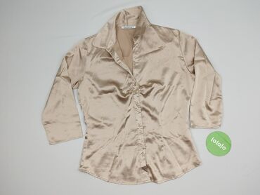 Koszula damska satynowa - Kolor: szampański/beżowy z delikatnym połyskiem - Fason: dopasowany, zaszewki i marszczenia z przodu podkreślające talię - Zapięcie: na guziki z przodu (przez całą długoś...