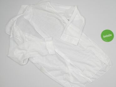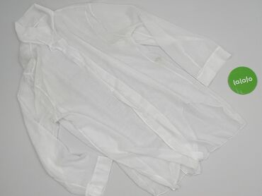 Biała koszula damska z długim rękawem - Krój: zapinana na guziki z przodu, mankiety na guziki - Kołnierz: klasyczny, lekko wyższy/stójka - Tkanina: lekka, półprzezroczysta, delikatnie żakardowa z ...