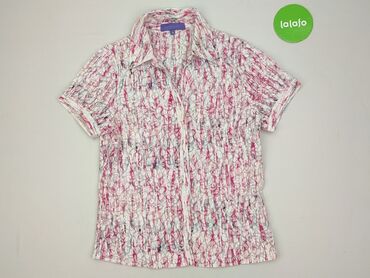 Koszula damska z krótkim rękawem - Fason: luźna koszula zapinana na guziki, klasyczny kołnierzyk - Materiał: 100% poliester (metka ze składem w galerii) - Wzór: abstrakcyjny, faliste linie w odcie...