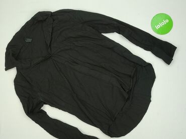 Czarna koszula damska marki AMISU w rozmiarze M. Charakteryzuje się klasycznym kołnierzykiem i długimi rękawami zakończonymi mankietami. Zapinana na guziki, co umożliwia regulację dekoltu. Prosty, ...