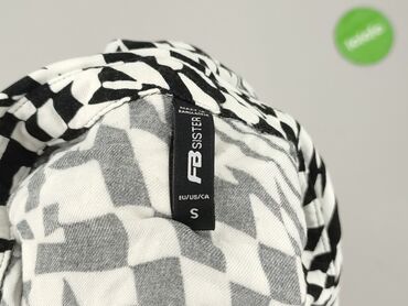 Koszula damska FB Sister, rozmiar L. - Fason: krótka koszula (crop), luźny krój - Rękaw: krótki - Kołnierzyk: klasyczny - Zapięcie: na guziki z przodu - Wzór: hipnotyczna szachownica/optical art –...