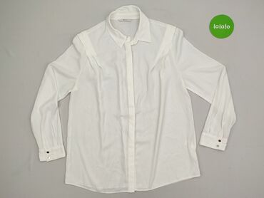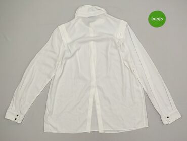 Biała koszula damska z długim rękawem - Krój: klasyczna koszula zapinana na guziki, kołnierzyk, mankiety na guziki, delikatnie zaokrąglony dół. - Rozmiar z metki: XL. - Skład materiału: 95% polies...