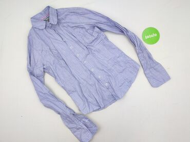 Koszula damska w paski - Krój: klasyczna koszula zapinana na guziki z kołnierzykiem, długie rękawy z mankietami na guziki - Wzór: drobne pionowe paski w kolorze błękitno-białym - Rozmiar z metki: ...
