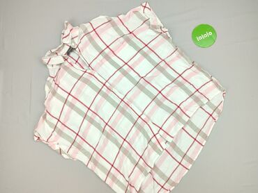 Koszula damska Primark Cares - Rozmiar: S (z metki) - Krój: krótka koszula z krótkim rękawem - Zapięcie: 4 guziki z przodu - Kołnierz: szeroki, klapowy - Wzór: drobna kratka w beżowo-białych odcie...