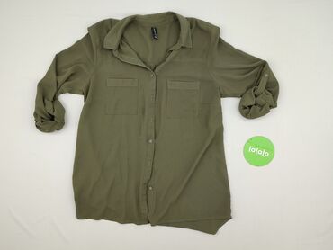 Koszula damska AMISU - Rozmiar: XS (EU/US/CA/CN) - Kolor: khaki/oliwkowy - Fason: dopasowany, wydłużony (tuniko‑koszula) - Zapięcie: na guziki z przodu - Kieszenie: dwie naszywane na piersi z patk...Stan: