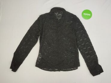 Czarna damska koszula koronkowa Wind, rozmiar XL - Fason: dopasowana koszula zapinana na guziki - Materiał: koronka o ażurowym wzorze; metka składu widoczna na zdjęciu (poliester z domieszką elast...Stan: