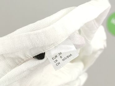 Krótki rękawBiała koszula damska z krótkim rękawem (nietoperz/opuszczone ramiona), zapinana na guziki z przodu. Klasyczny kołnierzyk, zaokrąglony dół. Lekka, przewiewna tkanina. Kolor: biały. Rozmiar z metki: EU 36 (UK 8, CN 165/84A). Uniwersalny fason – do biura i na co dzień, łatwa do łączenia z jeansami lub spódnicą.