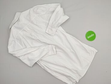 Biała koszula damska z długim rękawem, zapinana na guziki. - Tkanina: 100% bawełna (informacja z metki). - Klasyczny kołnierzyk. - Ażurowe, haftowane wycięcia na przodzie w dekoracyjny wzór. - ...