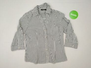 Damska koszula w paski, Made in Italy - Fason: koszula zapinana na guziki - Wzór: kontrastowe pionowe pasy; na kieszeniach pasy ułożone po skosie - Rękaw: krótki, lekko bufowany z gumką przy manki...