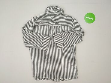 Koszula w paski – luźny krój, krótki rękaw - Wzór: pionowe paski w odcieniach bieli i szarości - Fason: oversize/luźny, lekko wydłużony tył z zaokrąglonym dołem - Rękaw: krótki, swobodny - Zapięci...