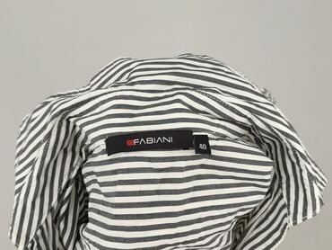 Damska koszula w paski, Made in Italy - Fason: koszula zapinana na guziki - Wzór: kontrastowe pionowe pasy; na kieszeniach pasy ułożone po skosie - Rękaw: krótki, lekko bufowany z gumką przy manki...Koszula damska w paski Fabiani