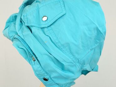 Turkusowa damska koszula/żakiet z krótkim rękawem - Fason: dopasowany, zapinany na 4 duże guziki z przodu - Kołnierz: z klapami, marynarkowy - Rękawy: krótkie z patką i guzikiem - Kieszenie: dwie ...