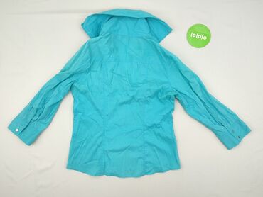 Koszula damska w paski - Krój: klasyczna koszula zapinana na guziki z kołnierzykiem, długie rękawy z mankietami na guziki - Wzór: drobne pionowe paski w kolorze błękitno-białym - Rozmiar z metki: ...