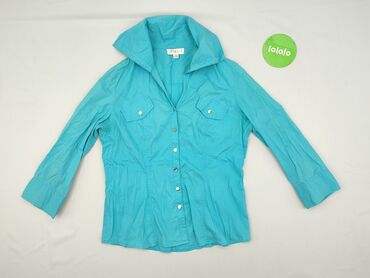 Damska koszula z cienkiej, półprzezroczystej tkaniny w kwiatowy wzór - Rozmiar z metki: L - Fason: lekko taliowana, zapinana na guziki - Rękaw: 3/4 - Kołnierzyk klasyczny - Wzór: kwiaty i ornament...