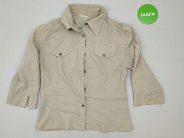 Beżowa koszula damska Bik Bok - Marka: Bik Bok - Rozmiar z metki: M - Krój: oversize/dłuższy, zaokrąglony dół - Zapięcie: pełny rząd guzików z przodu, mankiety na guziki - Kołnierzyk klasyczny - D...