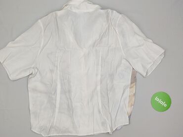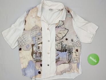 Koszula damska z krótkim rękawem, wzór retro/travel - Krój: luźny, zapinana na guziki z przodu, kołnierzyk, zaokrąglony dół - Rękaw: krótki - Rozmiar z metki: L - Materiał: lekka, zwiewna tkanina ...