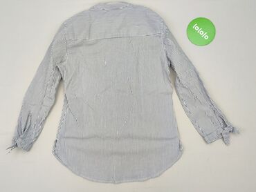 Koszula damska F&F - Model: klasyczna koszula zapinana na guziki - Rozmiar z metki: EU 36 (UK 8) - Fason: lekko wydłużony tył, kołnierzyk, długie rękawy z mankietami na guziki - Wzór: biało‑niebie...