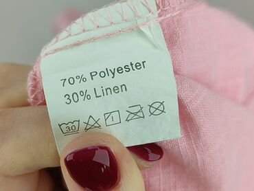 - Materiał: 70% poliester, 30% len – tkanina lekka, przewiewna, o subtelnej, krzyżowej fakturze.