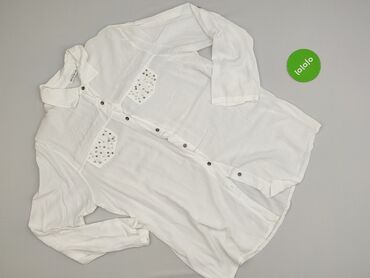 Biała koszula damska z długim rękawem i kołnierzykiem. - Materiał: miękka, przewiewna tkanina o drobnej, gofrowanej/teksturalnej fakturze. - Fason: luźny, wydłużony krój z zaokrąglonym dołem (tun...Stan: