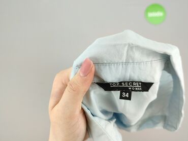 Biała koszula damska Top Secret (linia Top Secret Woman), rozmiar 34. - Fason: lekko luźny, z zaokrąglonym dołem - Dekolt: bez kołnierzyka, zapinany częściowo na guziki (plisa z kilkoma guzikami) ...