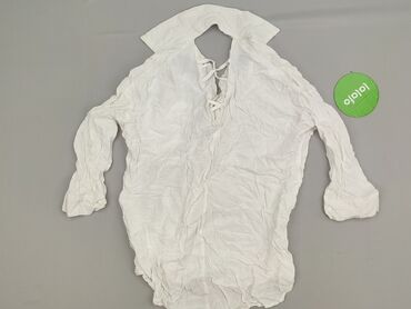 Biała koszula damska z elastycznym ściągaczem w talii, rozmiar L. - Krój: koszulowy, lekko dopasowany w pasie dzięki szerokiemu ściągaczowi z tyłu, zaokrąglony dół. - Rękawy: długie, bufiaste, zak...
