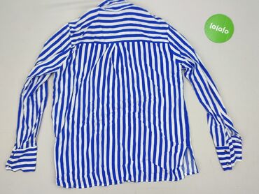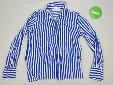 Koszula damska Sinsay, r. S - Fason: klasyczna koszula zapinana na guziki - Rękaw: długi, mankiety na guziki - Kołnierz: stójka - Wzór: pionowe paski w kolorze kobaltowym i białym - Długość: lekko...