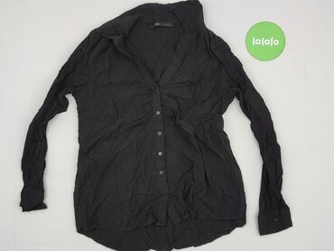 Koszula damska Sinsay - Kolor: czarny - Rozmiar z metki: S - Fason: zapinana na guziki, długi rękaw, kołnierzyk - Detale: lekkie marszczenie przy zapięciu z przodu, mankiety na guzik, zaokrąglony ...