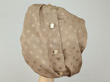 Koszulowa bluzka damska z krótkim rękawem – satynowy połysk, kolor beżowy/kremowy. - Fason: zapinana na guziki z przodu, lekko taliowana, delikatne marszczenie przy listwie guzikowej - Kołnierzyk ...Stan: