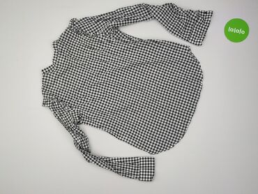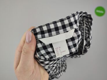 Koszula damska H&M - Krój: taliowana, z krótkim rękawem i klasycznym kołnierzykiem - Zapięcie: na guziki z przodu - Wzór: drobna czarno-biała krateczka/paski optyczne - Rozmiar z metki: EU 36 (US/...
