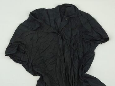 Czarna koszula/bluzka damska Bigarreau - Krój luźny, oversize - Krótkie rękawy - Zapięcie na guziki z przodu na całej długości - Okrągły dekolt bez kołnierzyka (stójka) - Delikatnie marszczona str...Stan: