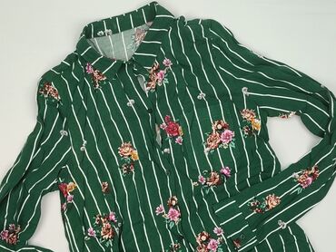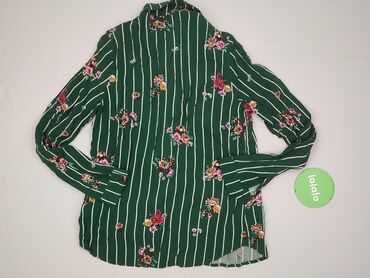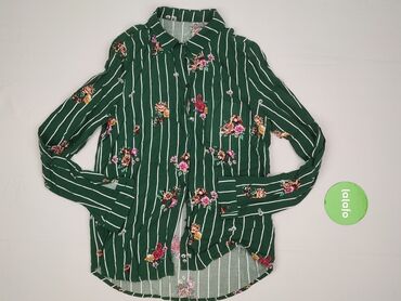 Koszula damska Cropp, rozmiar S. - Kolor: butelkowa zieleń - Wzór: pionowe białe paski + kwiaty w odcieniach różu, fioletu i żółci - Fason: zapinana na guziki z przodu, klasyczny kołnierzyk, zaokr...