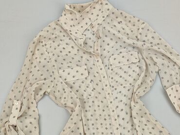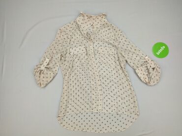 Bluzka damska New Look - Model: koszula z kołnierzykiem i długim rękawem - Wzór: czarno‑szare kwiaty na kremowym tle - Materiał: lekki, półtransparentny szyfon - Zapięcie: rząd drobnych guzików z ...