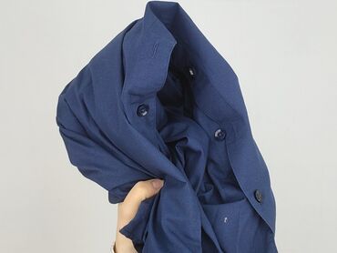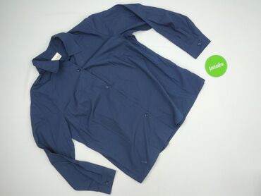 Koszula damska w odcieniu niebieskim, charakteryzująca się krótkimi rękawami i kołnierzykiem typu stójka. Wykonana z materiału o widocznej, lekko pogniecionej teksturze, co nadaje jej swobodny wygl...