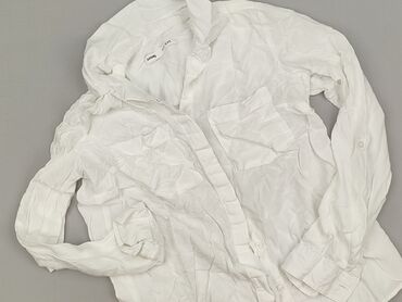 Biała koszula damska Sinsay - Rozmiar: S (z metki) - Fason: klasyczny, z kołnierzykiem - Zapięcie: na guziki z przodu - Rękawy: długie, mankiety zapinane na guziki - Kieszenie: dwie kieszenie na p...