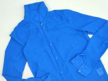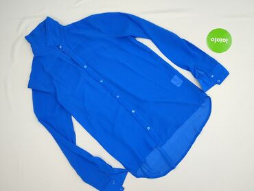 Koszula damska miłyj – rozmiar M - Kolor: intensywny kobalt/elektryczny niebieski - Krój: lekko oversize, dłuższy tył, klasyczny kołnierzyk - Zapięcie: rząd guzików z przodu (fioletowe akcenty) - ...