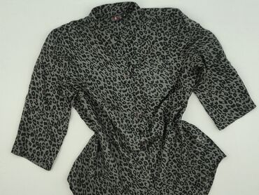 Koszula damska w panterkę, rozmiar 44/46. - Krój: luźny, zapinana na guziki z przodu - Rękaw: 3/4 z mankietem - Kołnierz: klasyczny - Kieszenie: 2 naszywane z przodu, wykończone lamówką - Wzór: an...
